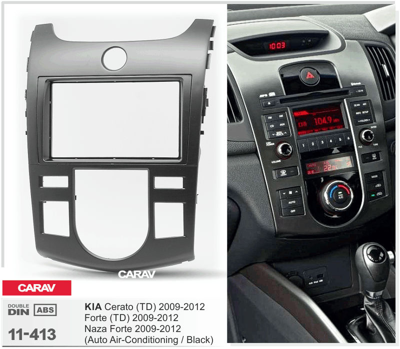 —CARAV 11-413 (2-DIN монтажная рамка для а/м KIA Cerato (TD), Forte (TD), Naza Forte 2009-12 Климат (черная)