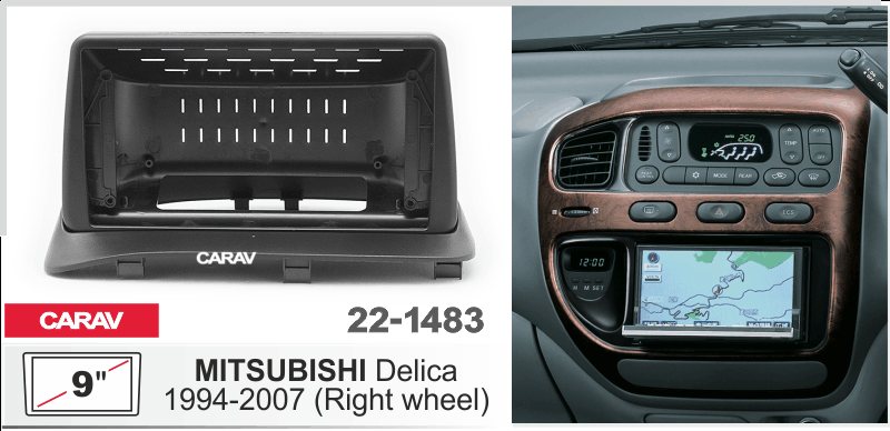 —CARAV 22-1483 (9 дюйм. монтажная рамка для а/м MITSUBISHI Delica 1994-2007 (руль справаl / монтаж сверху)